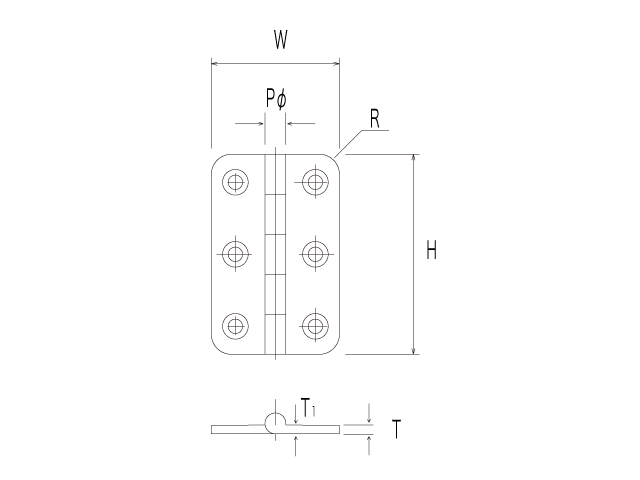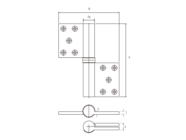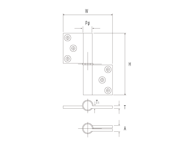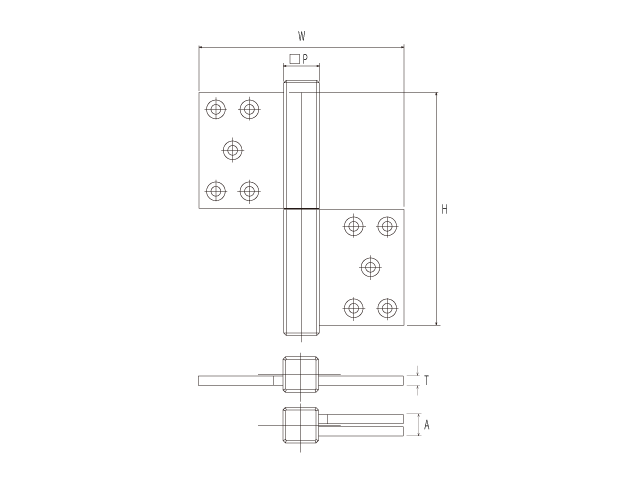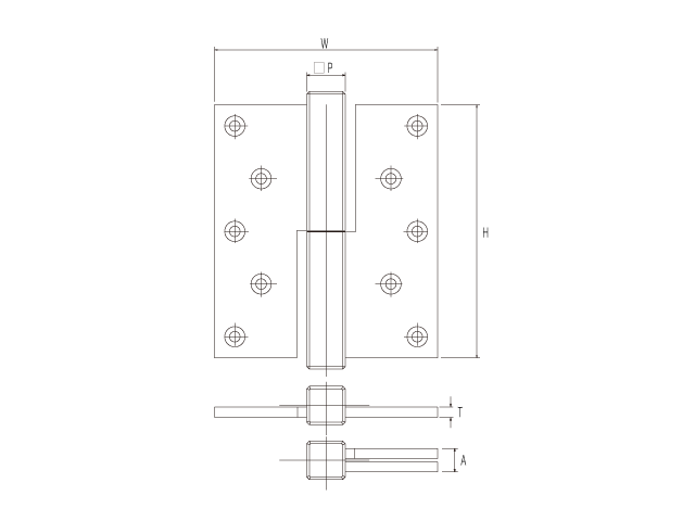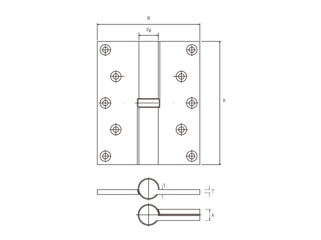 P Hingeis fixed to the top and bottom of the door and the door is opened and closed upon the vertical axis as its pivot point. This model is also called as Pivot Hingeand gives well-turned-out impression by its small metal exposure and finely-honed simple design.