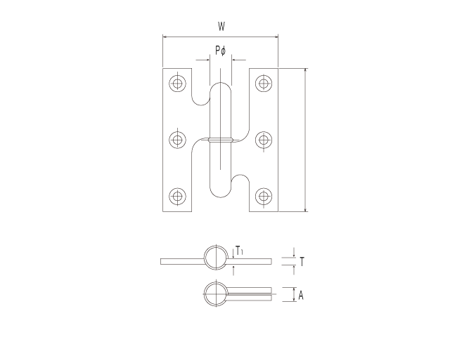 This model is the most basic type among wide range of our hinges for wooden fixtures. We have many varieties of model having different sizes, and we have been receiving fine reputations from our customers in consideration of their excellent usability and performance. |